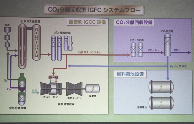 (固体酸化物形(がた)燃料電(SOFC))CO2 分離回収後の水素(H2)リッチガスを燃料として発電する設備。