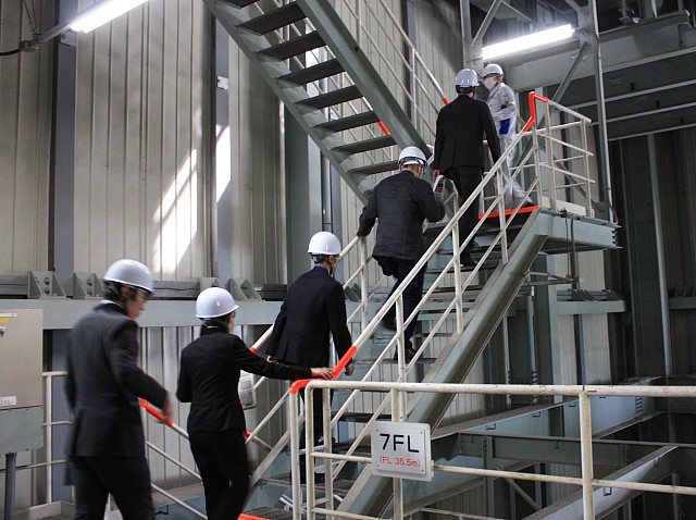 13:20~13:55 概況説明・質疑応答(35分)→14:55~15:45 現場見学・記念写真撮影(50分)