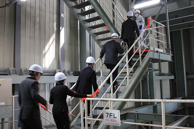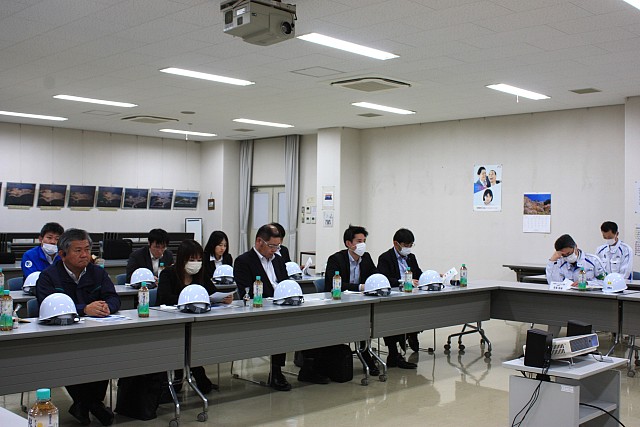 13:20~13:55 概況説明・質疑応答(35分)→14:55~15:45 現場見学・記念写真撮影(50分)