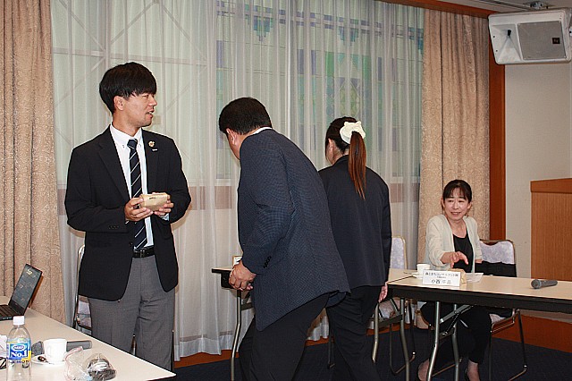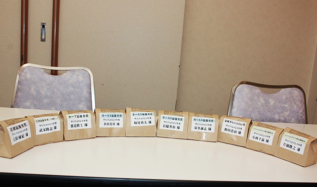 総会記念品は例年倉敷市の“牧珈琲”です。加えて、前期の最優秀ホールド賞、最優秀セーブ賞、最優秀先発賞珈琲もあります。今年は最優秀birthday賞というのもありました。この日がお誕生日の方だった様です。 |
