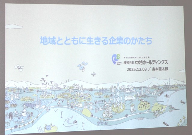 1.民間企業の講師講演:㈱中特ホールディングス/中国特殊㈱ 両社の重職を担う吉本龍太郎氏の講演です。